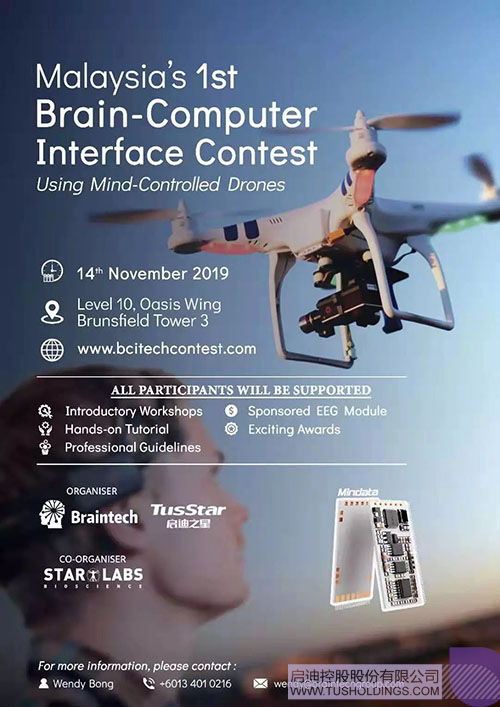 Braintech向與會(huì)的馬來西亞各高校大學(xué)生介紹:開幕儀式后,一系列的預(yù)熱與培訓(xùn)活動(dòng)也將陸續(xù)登陸:推介會(huì)、講座、論壇、創(chuàng)意工坊等活動(dòng),讓參賽者更好地迎接比賽。比賽中,參與者需要用腦波控制無人機(jī)飛行10碼,并對(duì)儀器進(jìn)行編程優(yōu)化,比賽中的優(yōu)勝者:冠軍將獲得3000令吉,亞軍2000令吉,季軍1000令吉,并設(shè)有5個(gè)鼓勵(lì)獎(jiǎng)(500令吉)。