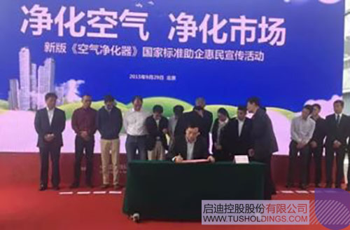 2015年9月29日,亞都董事長龍林作為廠商代表參加空氣凈化器新國標助企惠民發(fā)布會,并在會上簽訂了“踐行空氣凈化器新國標倡議書”,這是亞都人對新國標實施的承諾。
