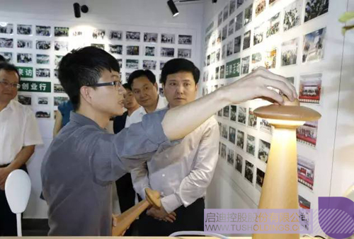 劉偉在調研過程中還認真了解了江門市征極光兆科技有限公司研發的智能燈光升級改造系統、江門古旗亭工業設計的“時光燈”以及江門堡城科技研發的光伏發電系統等入孵企業產品情況。
