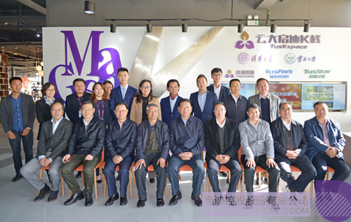 陳禹(前排左一)向尹蔚民(前排右三)一行介紹啟迪在滇發展情況