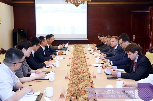 雙方座談務實而充滿建設性。針對舒瓦洛夫主席在精準醫療、老工業基地改造、科技園建設、創投基金、環保項目及區塊鏈技術等領域的合作建議,王濟武董事長給出了積極回應。
