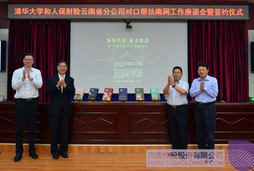 簽約儀式后,由云南啟迪協(xié)同啟迪科服成立的無量山啟迪大健康科技有限公司“土林鳳凰”新產(chǎn)品正式發(fā)布,姜勝耀、吉向陽、龍大偉、人保財(cái)險云南省分公司總經(jīng)理雙磊(清華校友)共同為新產(chǎn)品揭幕。作為啟迪精準(zhǔn)助力南澗發(fā)展“六個一”之茶產(chǎn)業(yè)發(fā)展舉措,此次新品以“無量茗香 水木情深”為主題,由清華大學(xué)美院師生進(jìn)行設(shè)計(jì)。