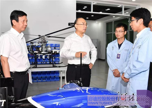 這是許勤到清航裝備科技有限公司調(diào)研無人機項目。圖片來源:河北新聞網(wǎng)