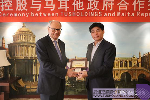 5月31日,馬耳他共和國代表團到訪啟迪控股。馬耳他前總統H.E.Marie Louise Coleiro Preca女士、啟迪控股常務副總裁陳鴻波先生和SSH 全球項目策劃與投資公司董事長陳嵐女士進行了會談并共同見證馬耳他財政部與啟迪控股、啟迪三螺旋公司、SSH公司簽署合作備忘錄。馬耳他前總統辦公室主任、馬耳他信托基金會行政官Carmel Briffa先生,馬耳他信托基金會CEO Michael Bianchi先生等出席簽約儀式。
