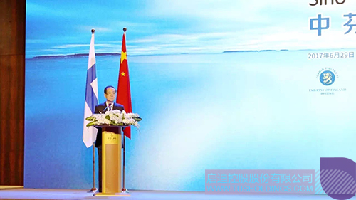 “建交67年以來(lái),友好、互利、合作已經(jīng)成為中芬關(guān)系的主旋律。今年4月,習(xí)近平主席在對(duì)芬蘭進(jìn)行國(guó)事訪問(wèn)期間,兩國(guó)領(lǐng)導(dǎo)人確立了面向未來(lái)的新型合作伙伴關(guān)系,譜寫(xiě)了中芬關(guān)系的新篇章,開(kāi)啟了中芬合作的新政策。”韓啟德副主席回顧了中芬合作成果,認(rèn)為中芬戰(zhàn)略高度契合,經(jīng)濟(jì)互補(bǔ)優(yōu)勢(shì)更加凸顯,務(wù)實(shí)合作潛力巨大,前景廣闊。他圍繞“創(chuàng)新”、“綠色”、“可持續(xù)”三大關(guān)鍵詞,提出雙方未來(lái)的主要合作方向,希望雙方政府、企業(yè)、企業(yè)家攜手為中芬兩國(guó)經(jīng)濟(jì)增長(zhǎng)作出新的貢獻(xiàn)。