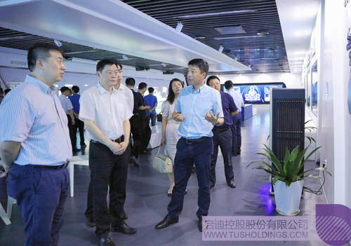 趙長(zhǎng)山董事長(zhǎng)(左二)一行參觀考察啟迪控股數(shù)字展廳