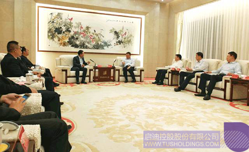 近日,王濟武董事長率團赴青島考察訪問,并與青島市市委副書記、市長孟凡利進行了會見,雙方就啟迪控股與青島市的全面戰略合作進行了深入交流。青島市政府副市長張德平,市政府秘書長卞建平,城陽區委書記王波,城陽區委副書記、區長李紅兵,青島環海經濟開發區管理委員會主任于延濤陪同會見。