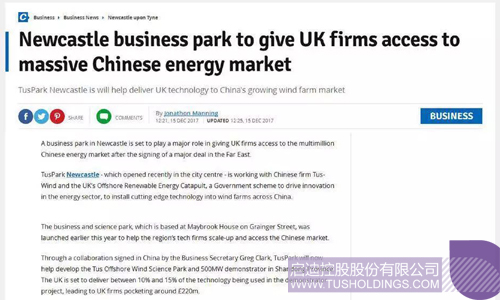 Chroniclelive:啟迪紐卡斯爾科技園讓英國企業獲得龐大的中國能源市場